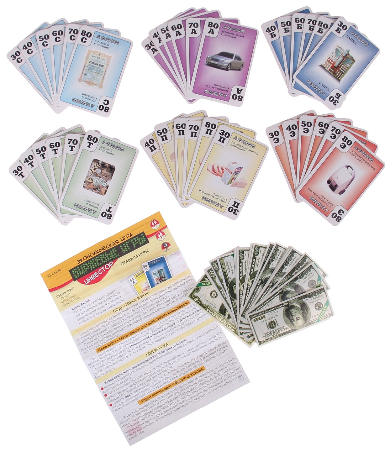- Комплектация 36 карт, набор денег, правила