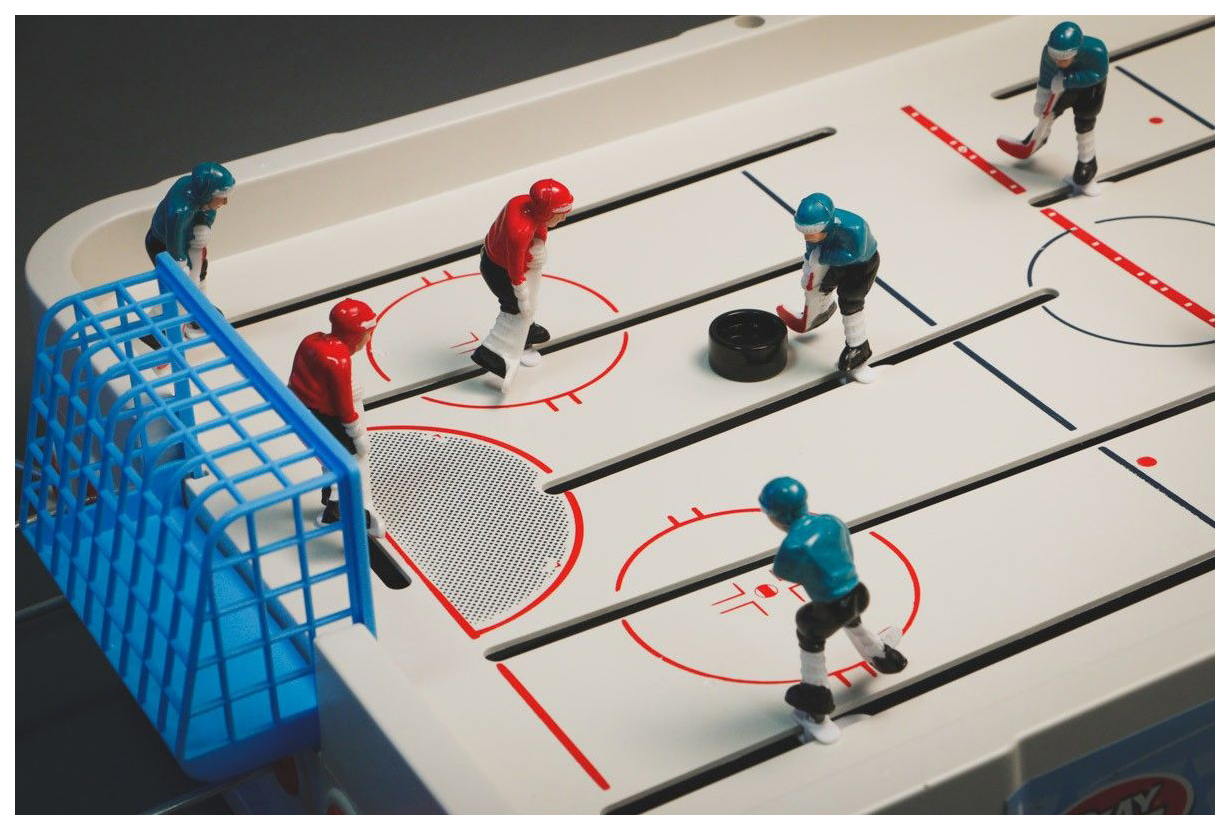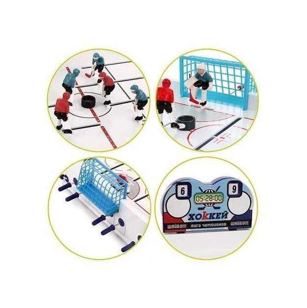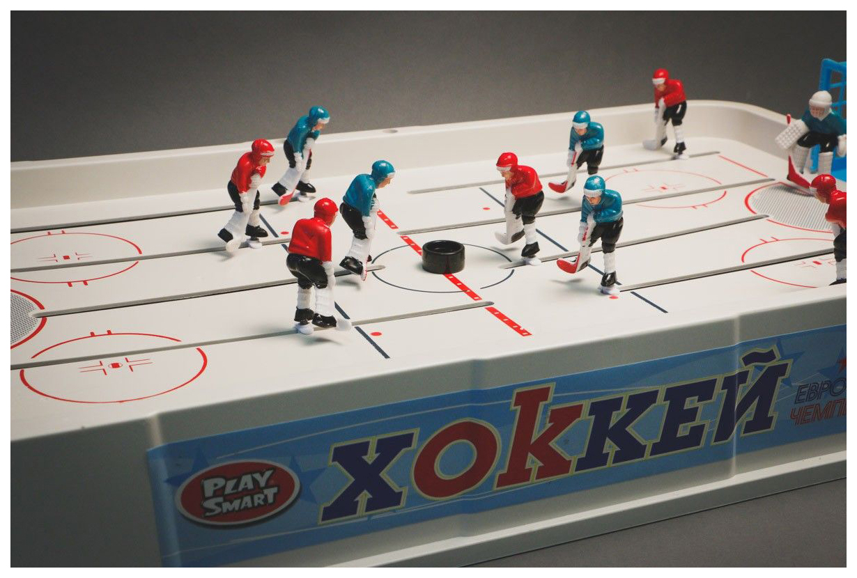 - Комплектация игровое поле - 1 шт; фигурки игроков - 12 шт; фигурки вратарей - 2 шт; ворота - 2 шт; счетное табло - 1 шт; шайба - 2 шт; наклейки - 5 шт
