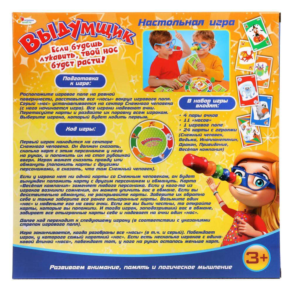 - Комплектация 4 пары очков; 11 "носов"; 1 игровое поле; 24 карты с героями (Снежный человек, Инопланетянин, Дракон, Привидение, Веселая компания)