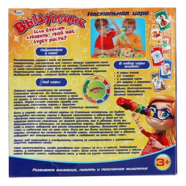 - Комплектация 4 пары очков, 11 "носов", 1 игровое поле, 24 карты с героями