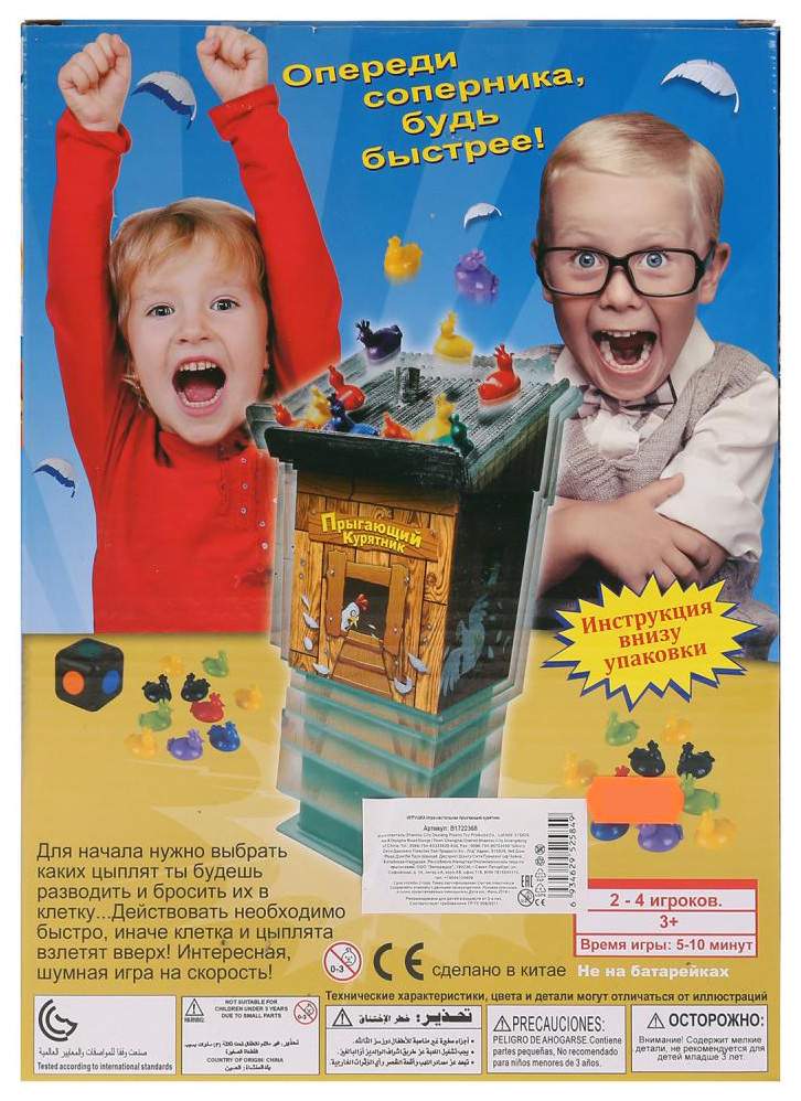 - Комплектация курятник; 24 цветные курицы; кубик