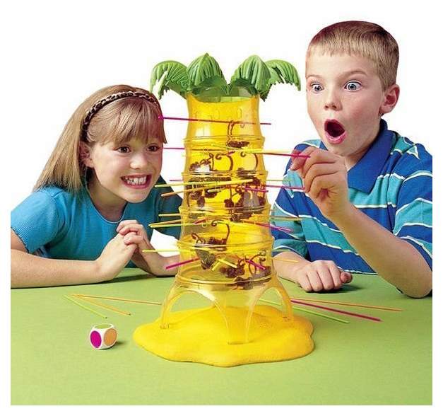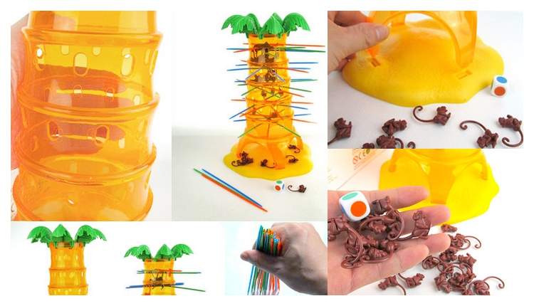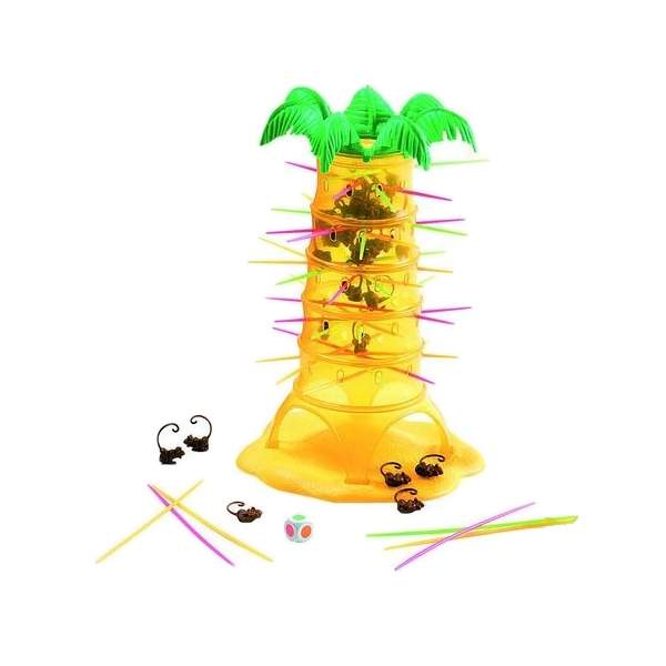 • Комплектация 10 голубых палочек; 10 зелёных палочек; 10 оранжевых палочек; 30 обезьянок; Верхушка дерева; Игральный кубик; Инструкция; Подставка под дерево; Ствол дерева