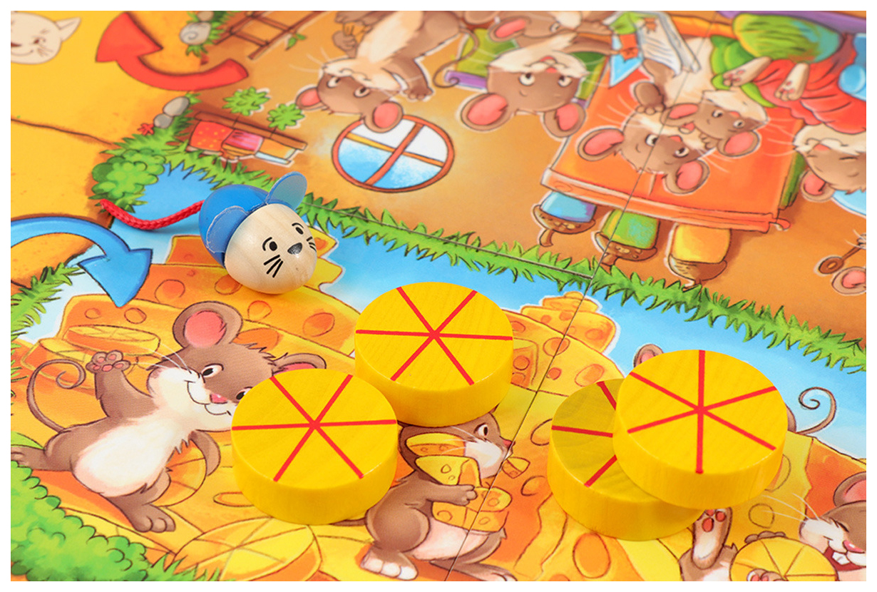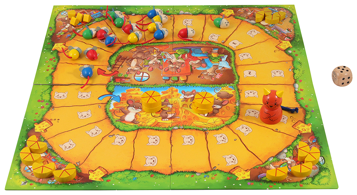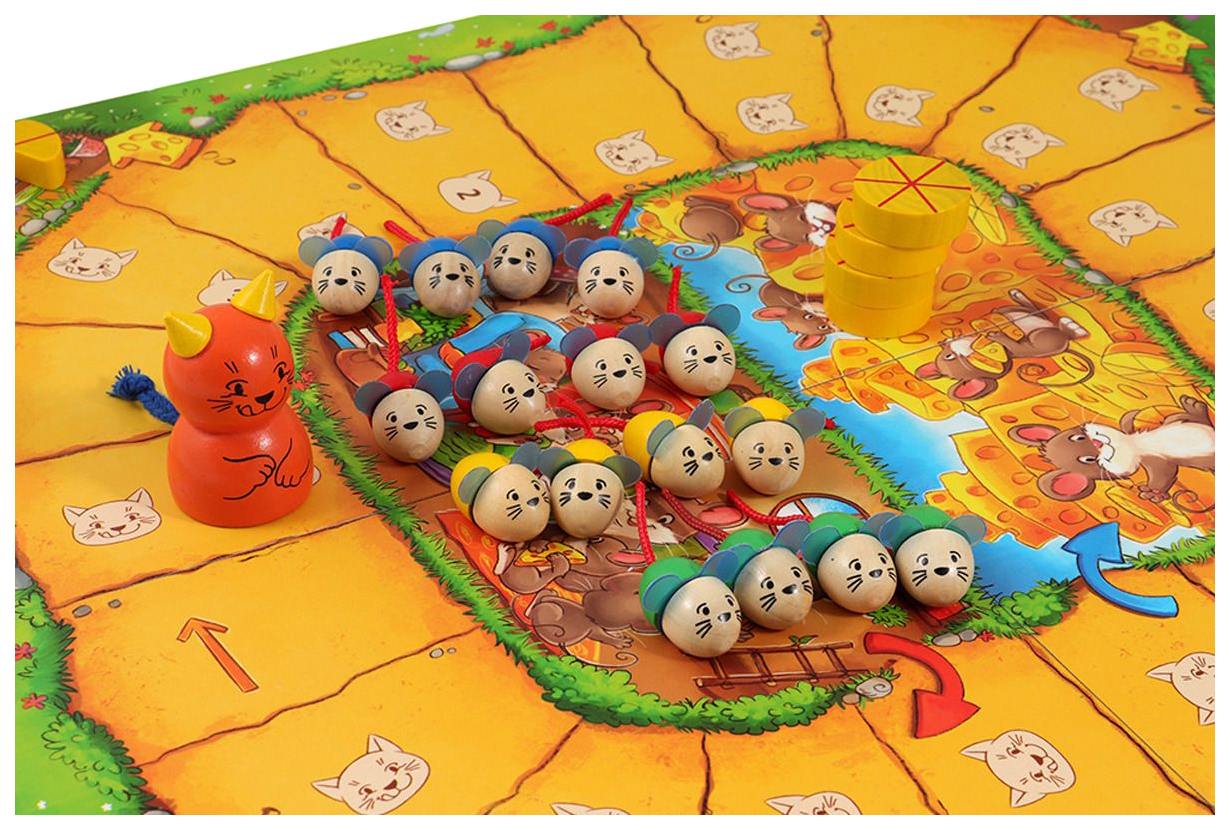 • Комплектация игровое поле; фигурка кошки; мышата - 18 шт; сыр - 20 шт; деревянный кубик; правила игры