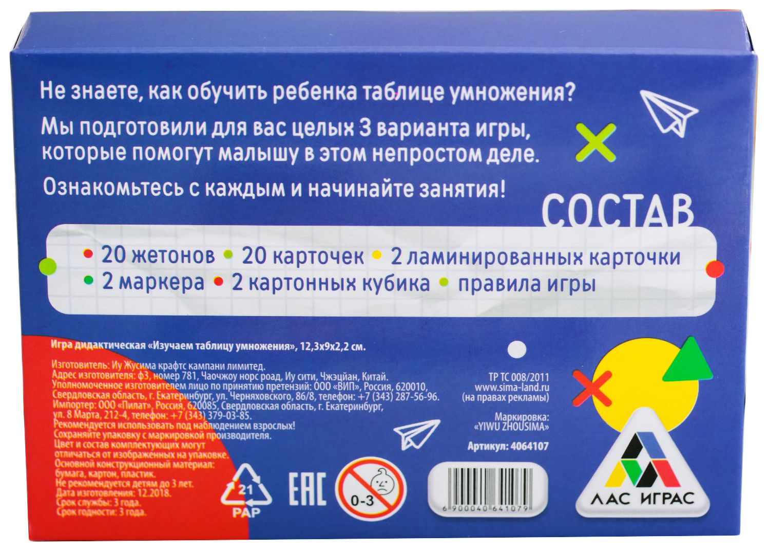 Настольная обучающая игра «Изучаем таблицу умножения» ЛАС ИГРАС