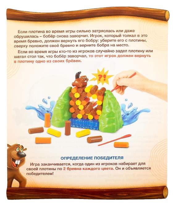 - Комплектация Бобер; Бревна; Палочка; Плотина; Правила игры