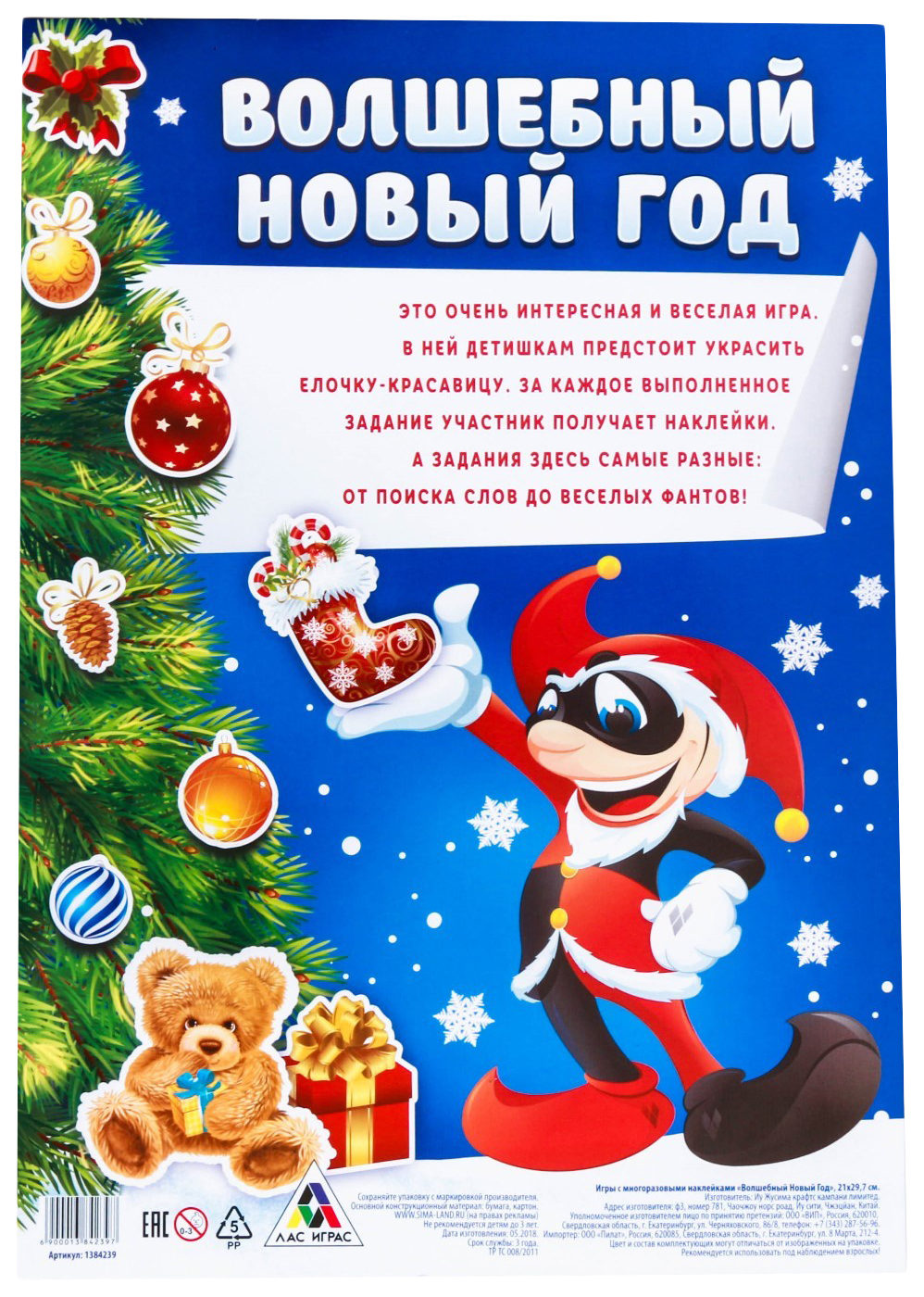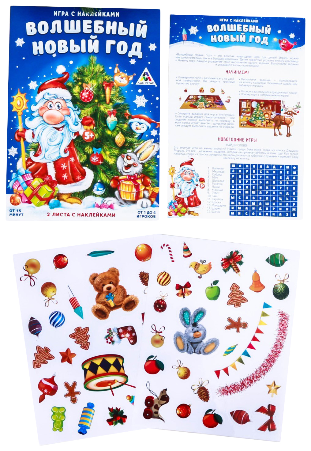 - Комплектация 2 листа с многоразовыми наклейками; Игровое поле из плотного картона; Инструкция к игре