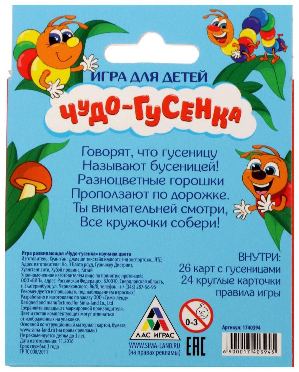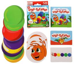 - Комплектация 26 карточек с гусеницами; 24 круглые карточки; правила игры