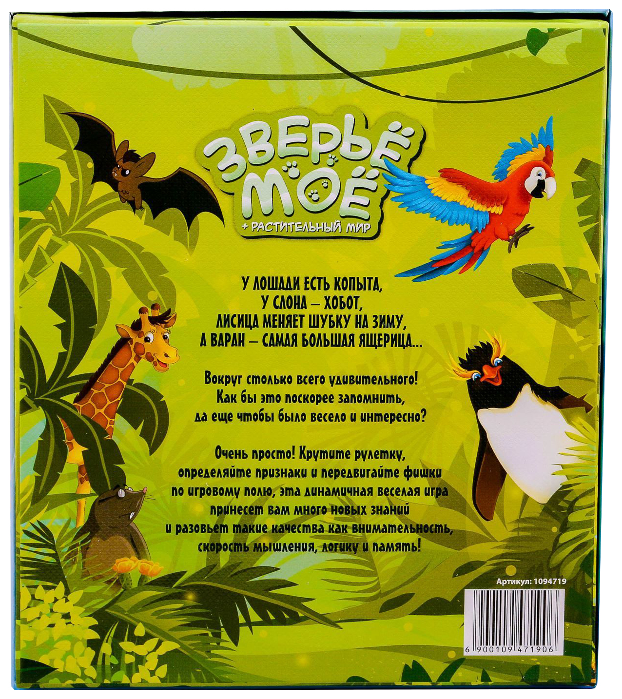 Настольная игра развивающая, изучаем животных Зверье мое ЛАС ИГРАС