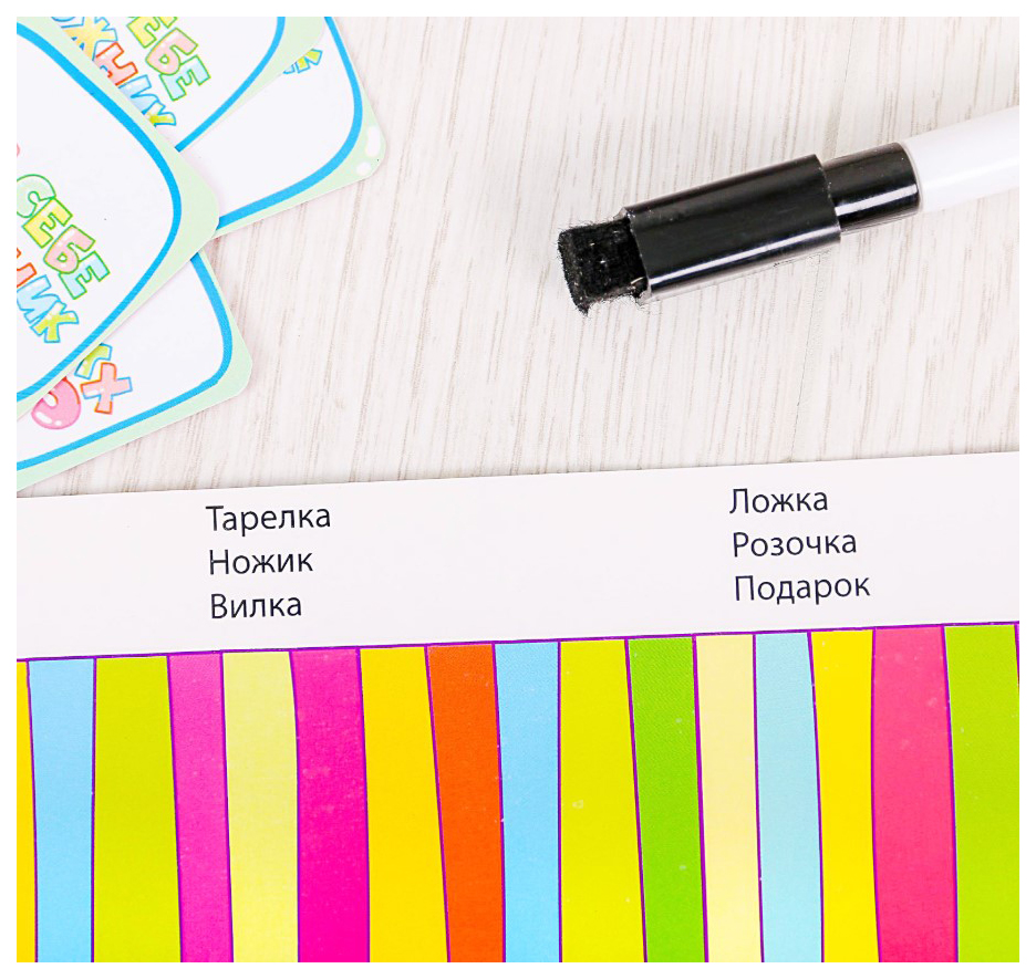 • Комплектация 1 пластиковый планшет; 100 карточек для подсчёта баллов; 2 маркера; 50 карточек с иллюстрациями