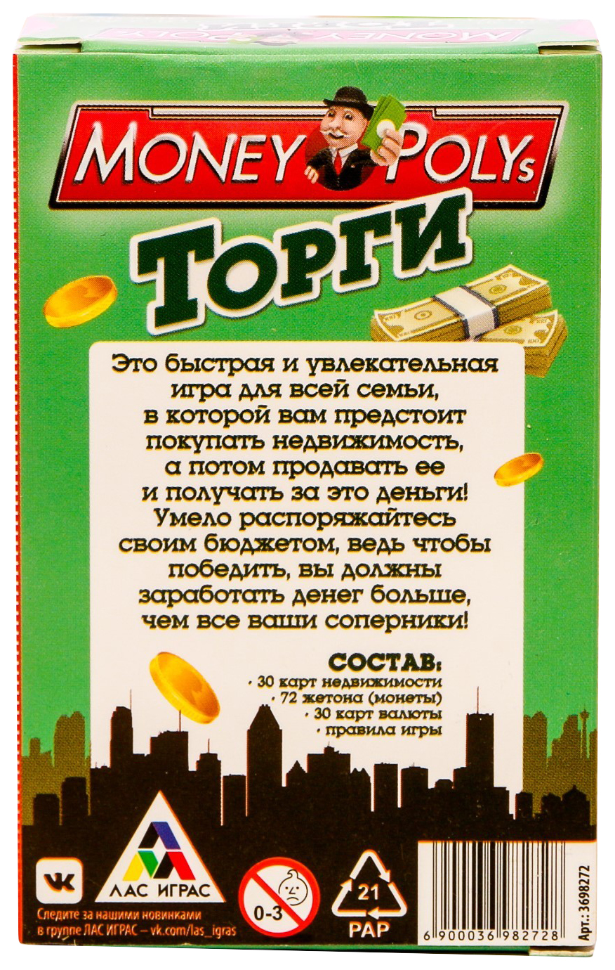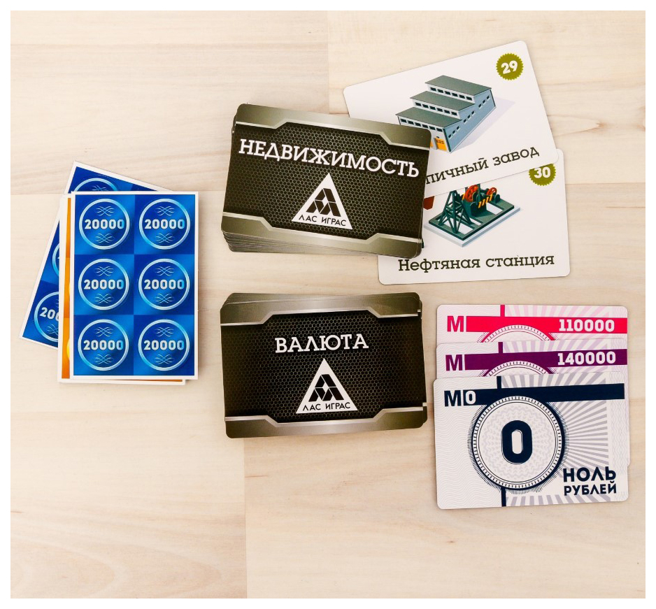- Комплектация 12 жетонов-монет номиналом 10 000 рублей; 30 карт валюты; 30 карт недвижимости; 60 жетонов-монет номиналом 20 000 рублей; Правила игры