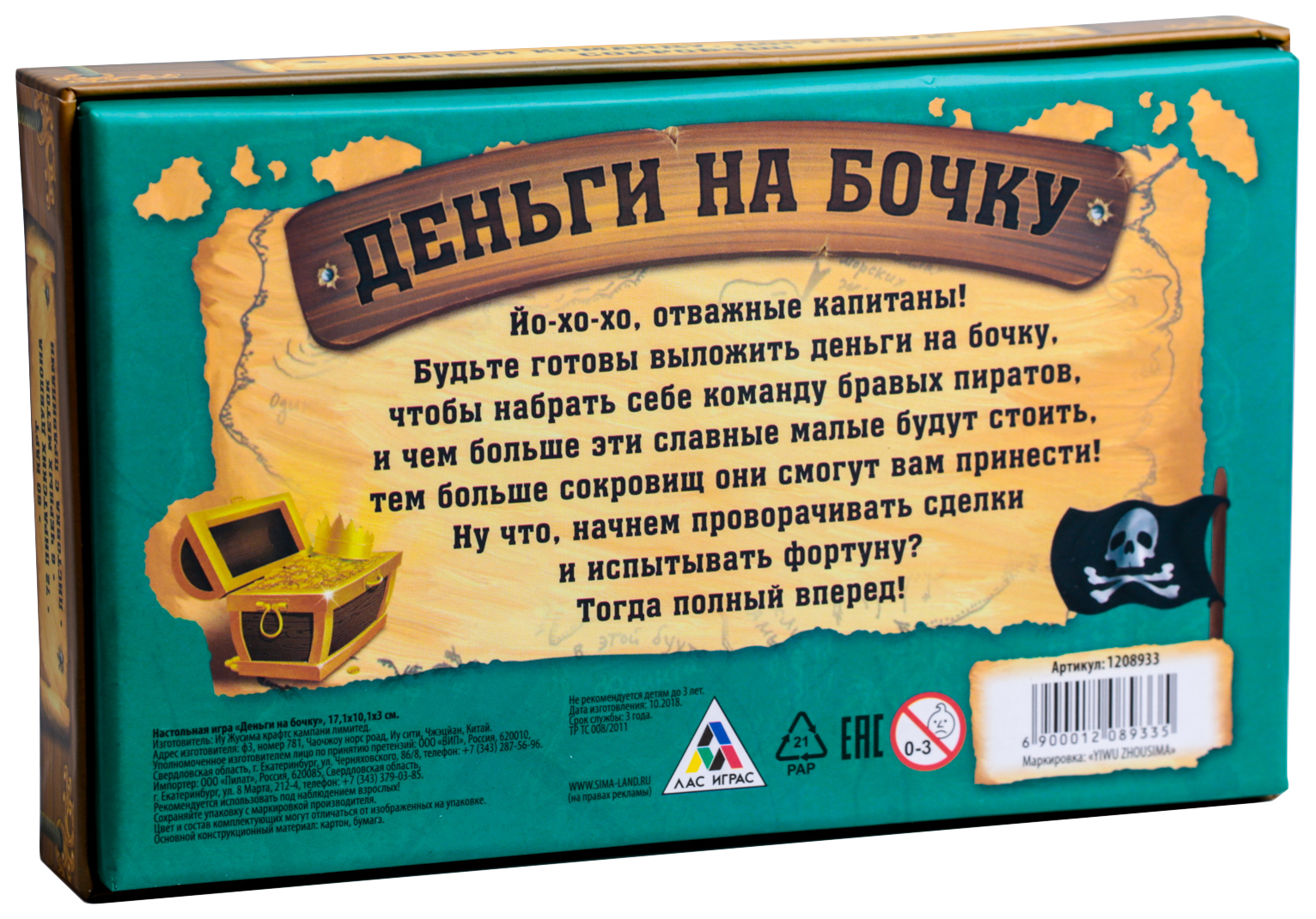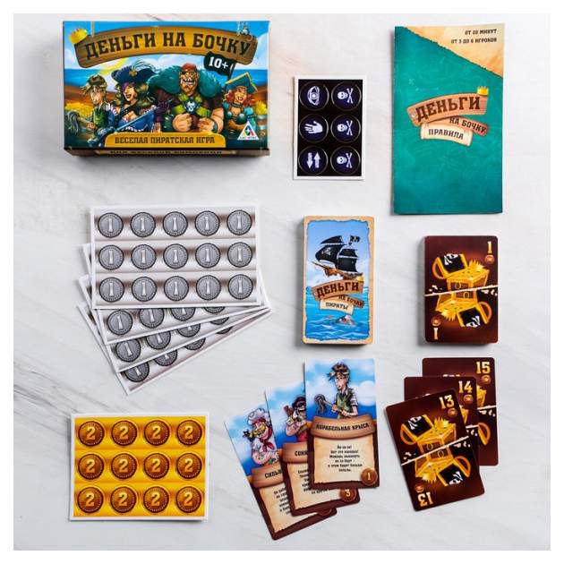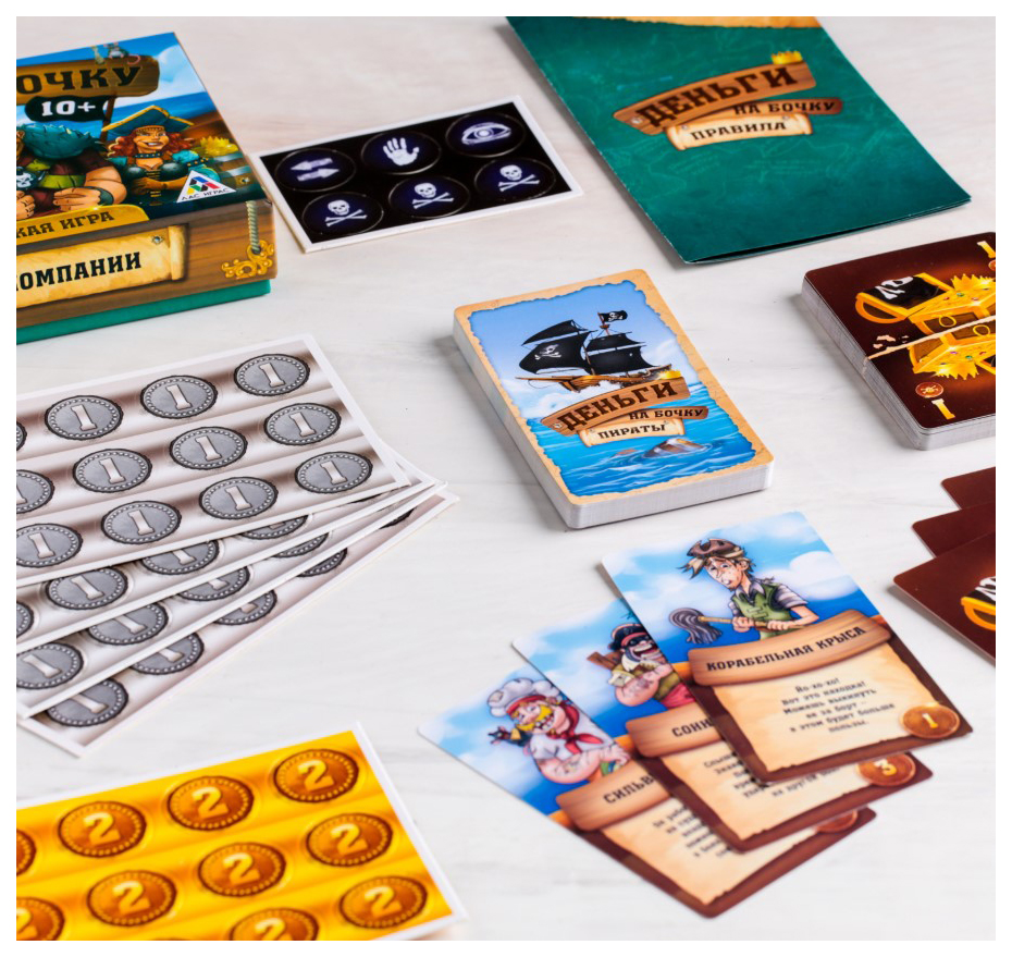 • Комплектация 30 карт с пиратами; 30 карт с сокровищами; 6 чёрных меток; 72 дублона; Правила игры