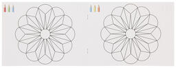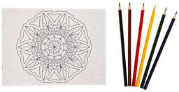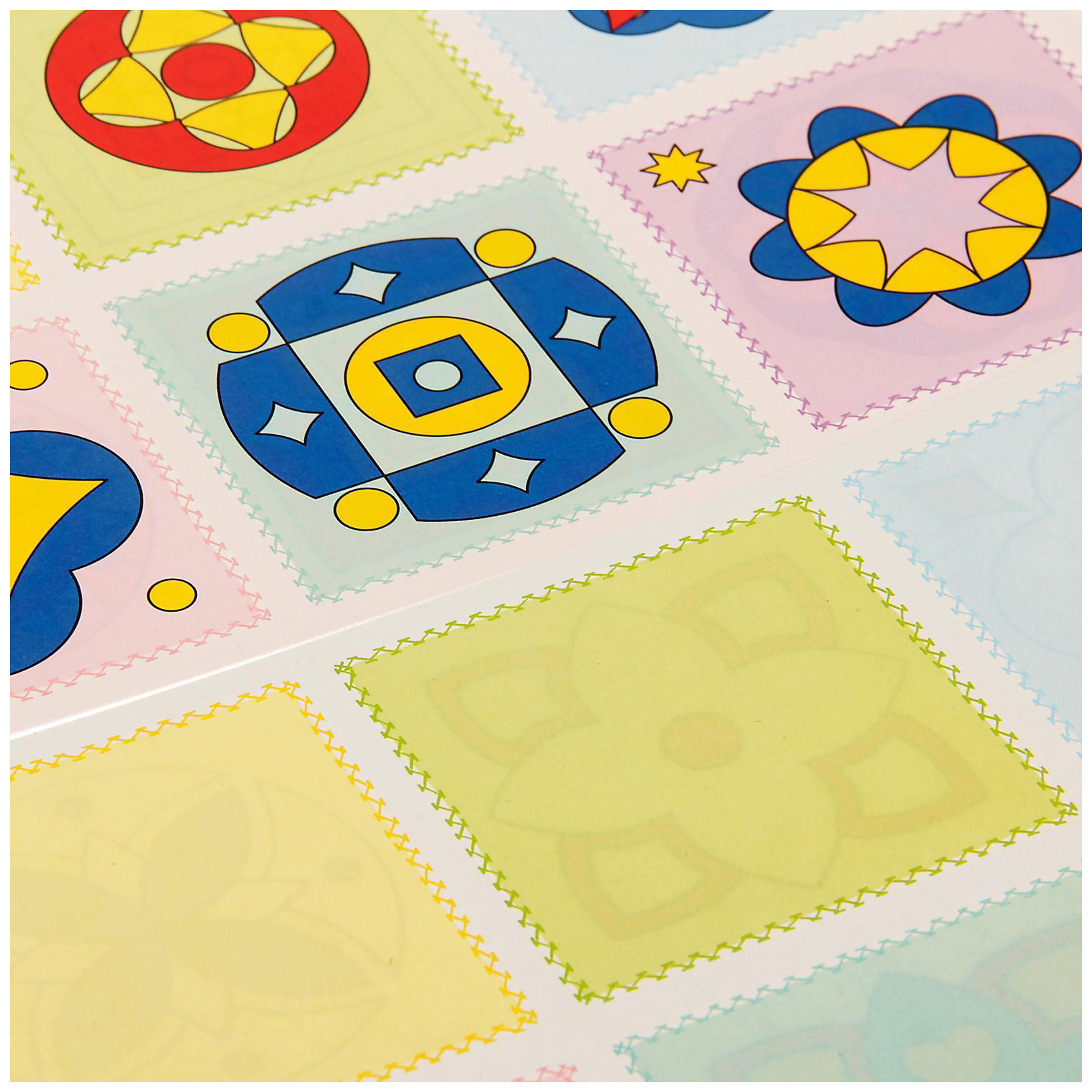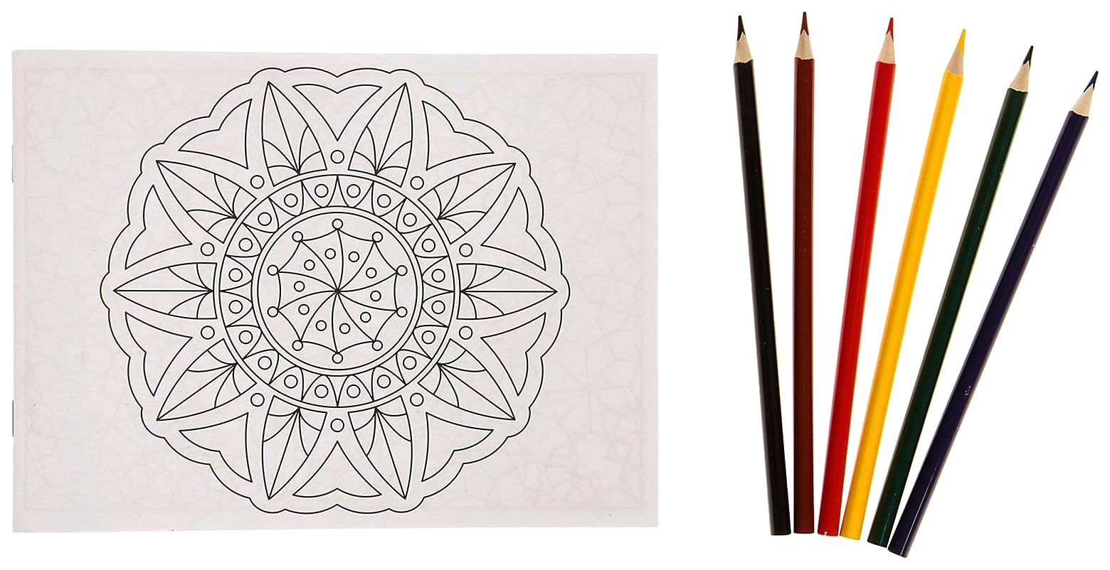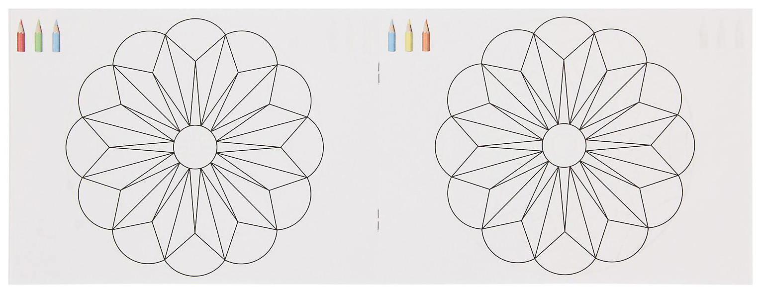 Комплектациялото с прозрачными карточками; блокнот для творчества; игра «Составляем орнаменты»; 9 двусторонних картонных карт-основ; 54 пластиковые прозрачные карточки в мешочке; набор мелков Erich Krause; инструкция для родителей