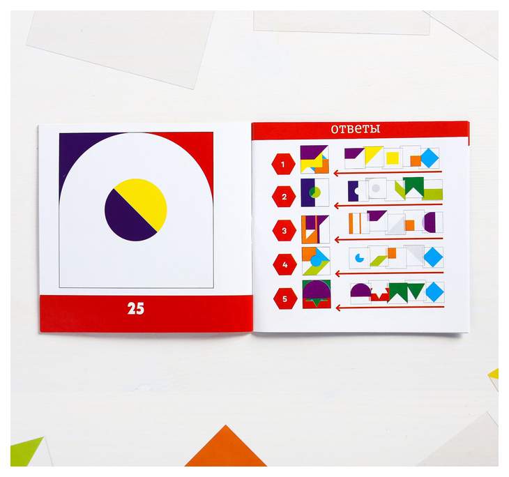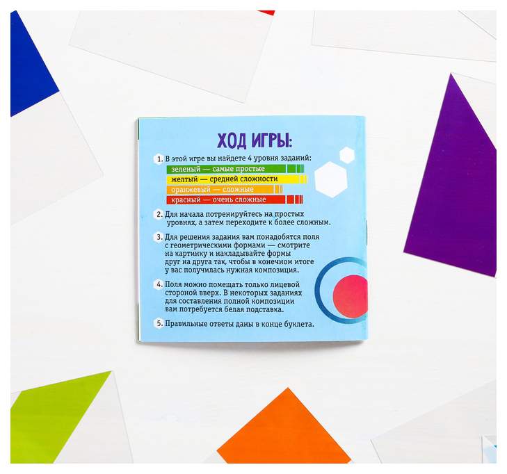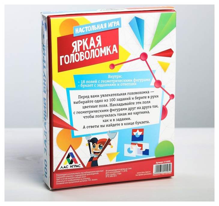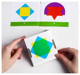 • Комплектация 18 полей с геометрическими фигурами; правила игры с заданиями и ответами