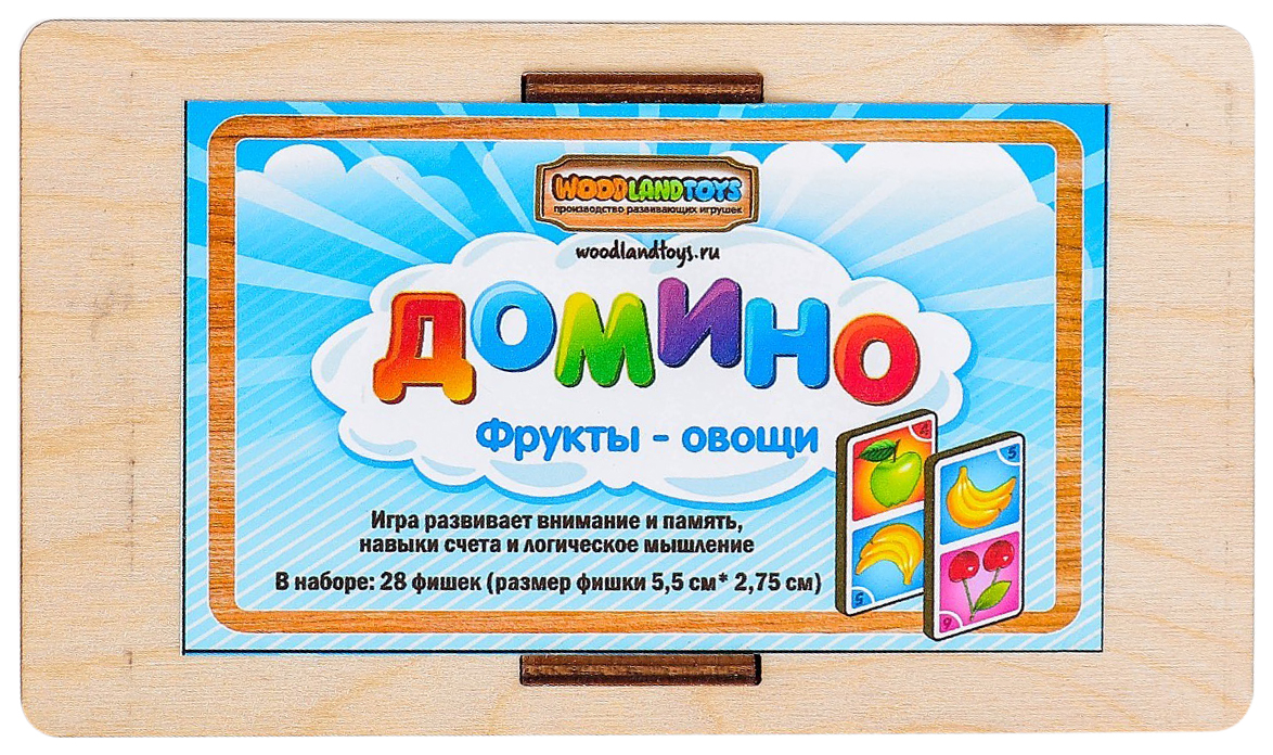 Домино "Овощи, фрукты", 28 шт., рисунок наклеен, в коробке Woodland (Сибирский сувенир)