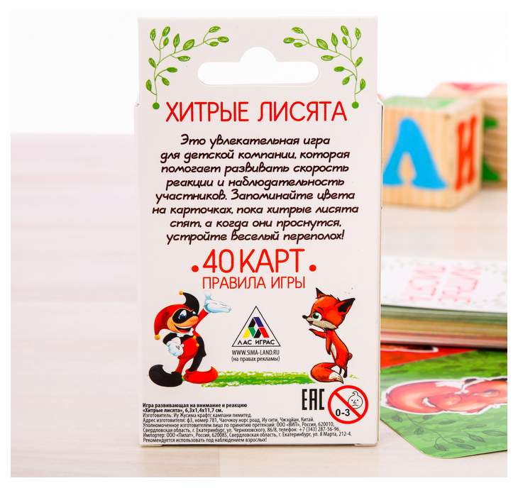 - Комплектация 40 карточек; правила игры