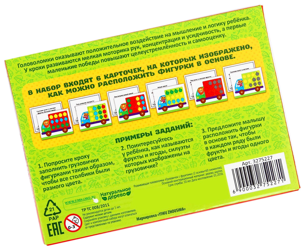 - Комплектация Карточки с примерами и заданиями - 6 шт; Основа 10х15 см - 2 шт; Разноцветные фигурки из дерева - 40 шт