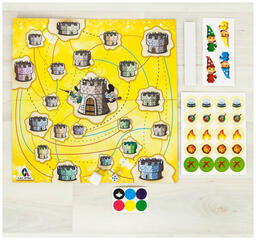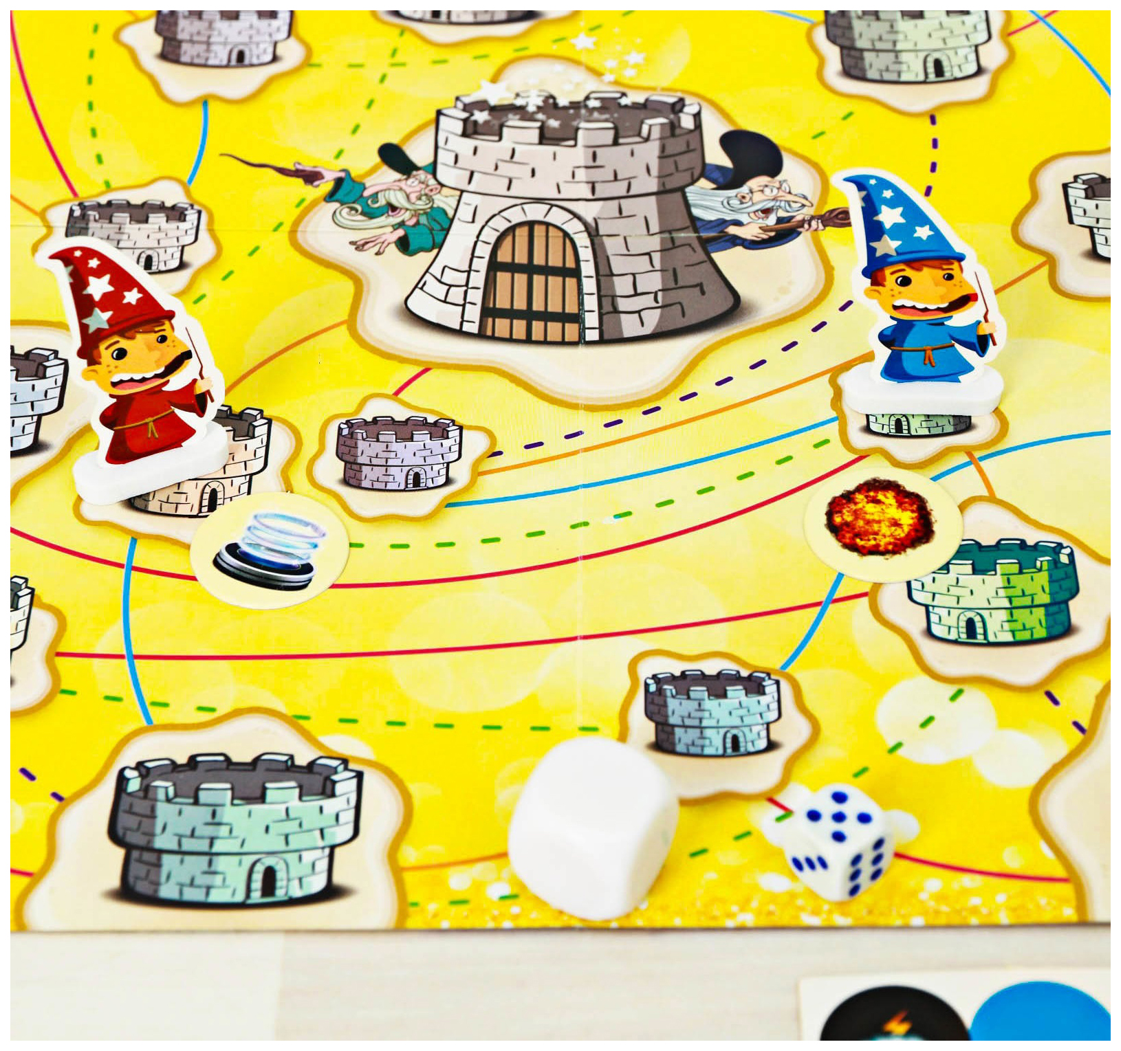 • Комплектация игровое поле; 4 фишки волшебников; 20 жетонов; 1 пустой кубик + наклейки; 1 кубик с числовыми значениями; правила игры