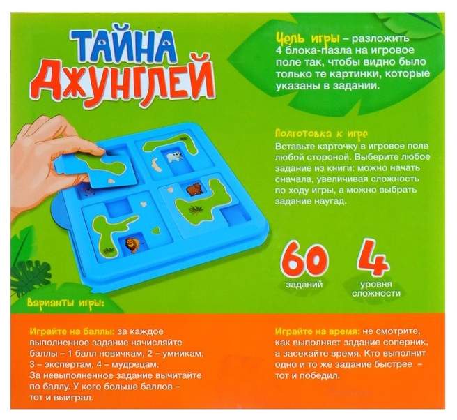 - Комплектация игровое поле; пазлы