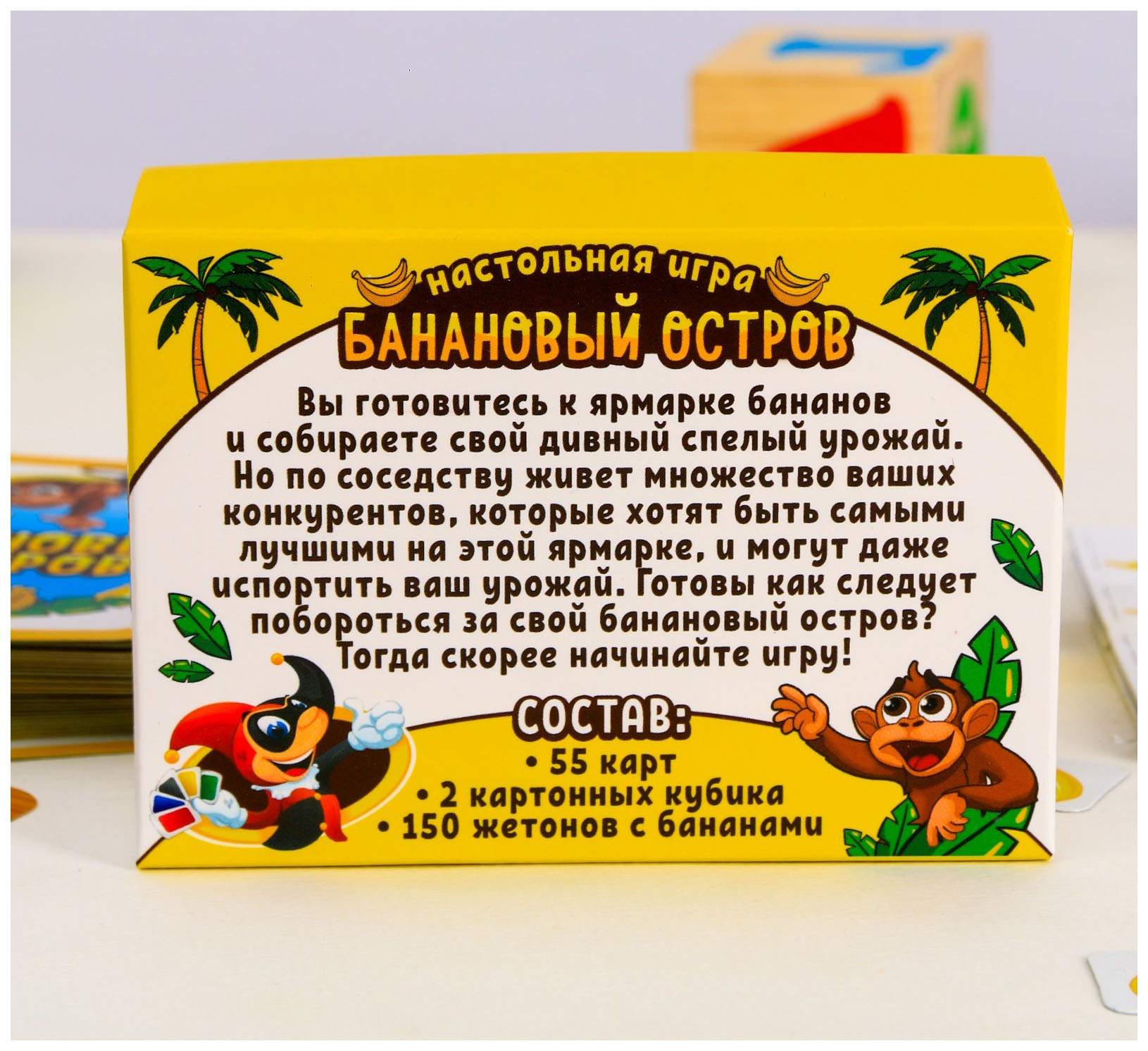 • Комплектация 55 карт; 2 картонных кубика; 150 жетонов с бананами; правила игры