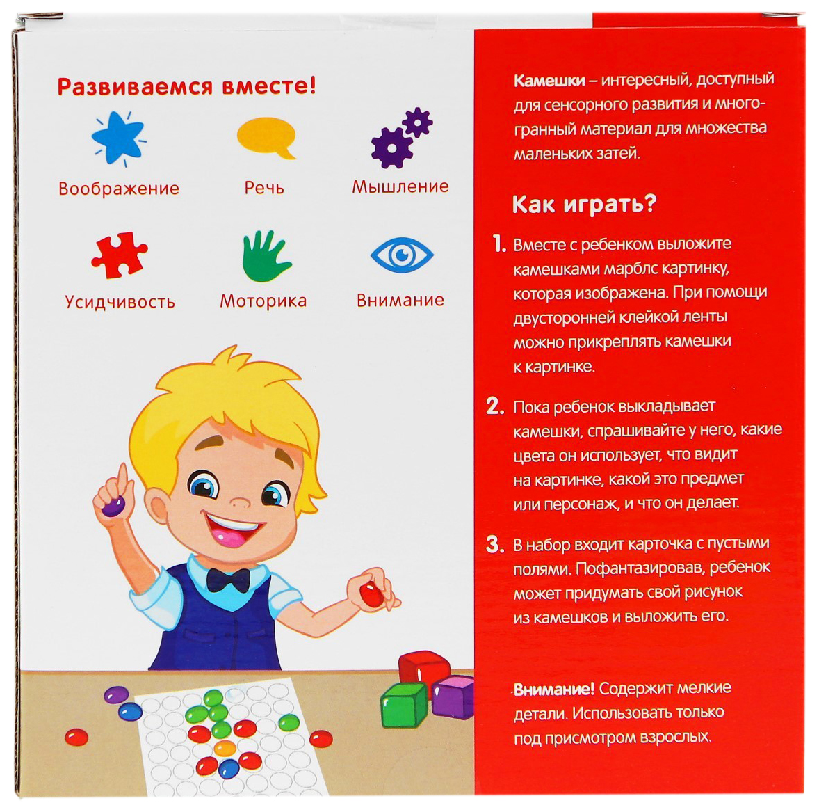 - Комплектация Карточки-схемы 10 шт; Разноцветные камешки - 75 шт