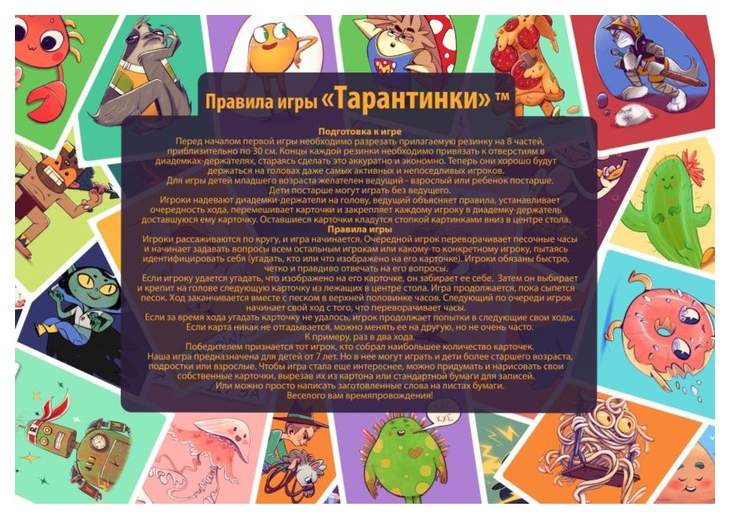 - Комплектация 36 карточек; 8 держателей; Песочные часы; Шляпная резинка