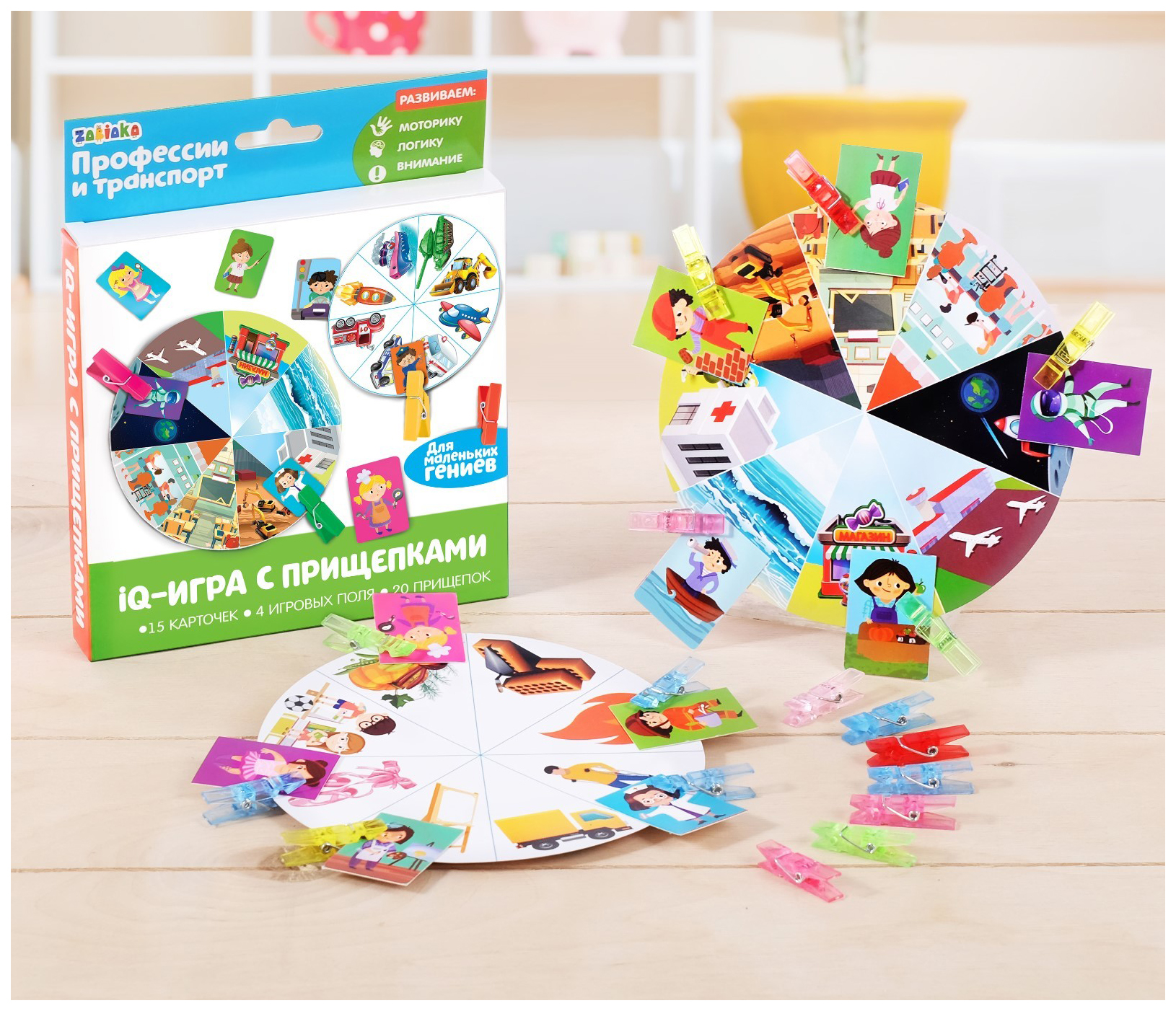 - Комплектация Карточки; Игровое поле - 4 шт; Прищепки
