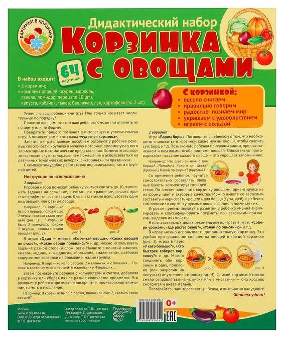 - Комплектация 2 корзинки с прорезями; карточки с овощами - 62 шт.