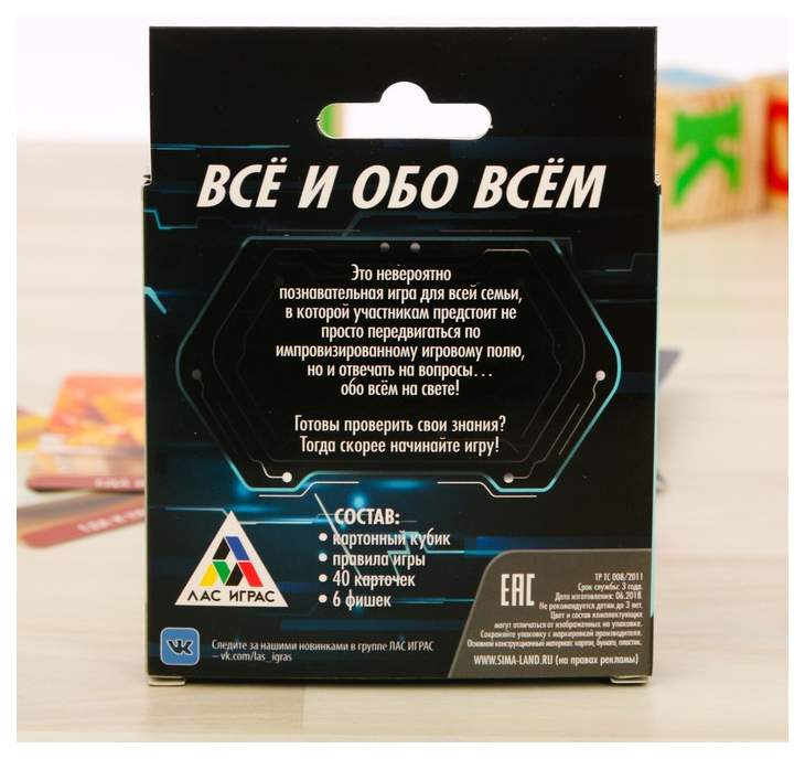 - Комплектация карточки - 40 шт; кубик; фишки - 6 шт; инструкция