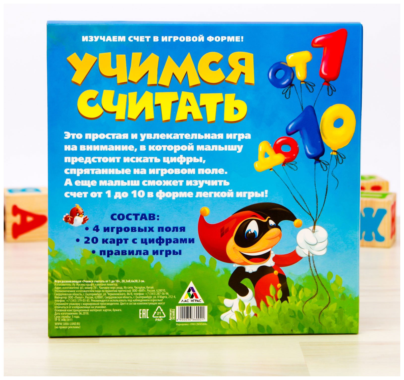 - Комплектация 4 игровых поля; 20 карт с цифрами; правила игры