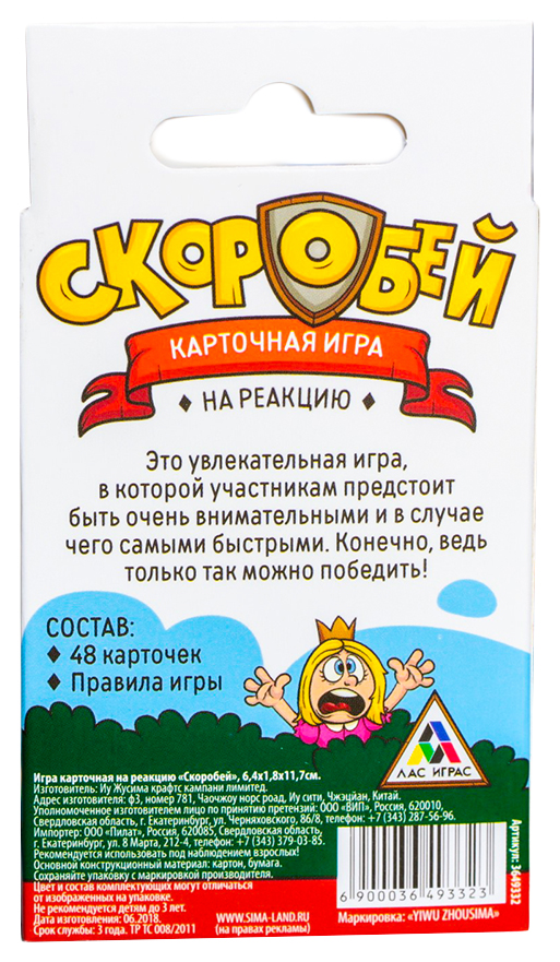 Настольная игра карточная на реакцию "Скоробей" ЛАС ИГРАС