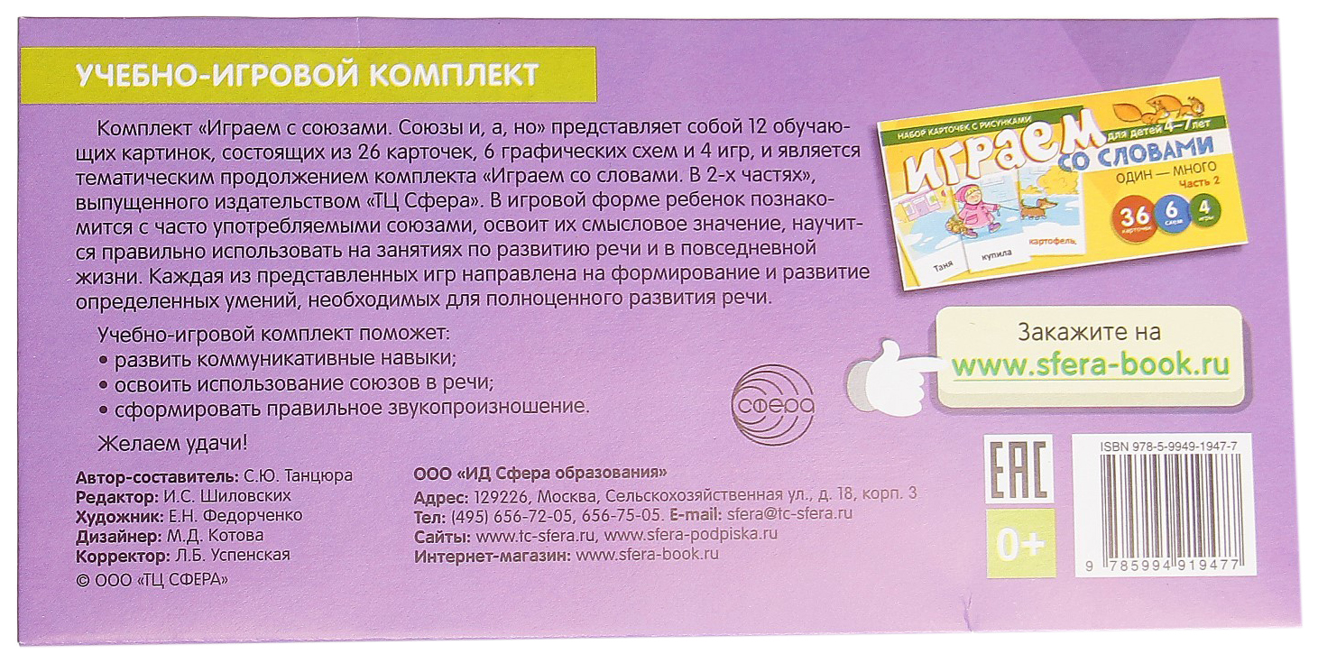 - Комплектация Графические схемы - 6 шт; Карточки - 26 шт