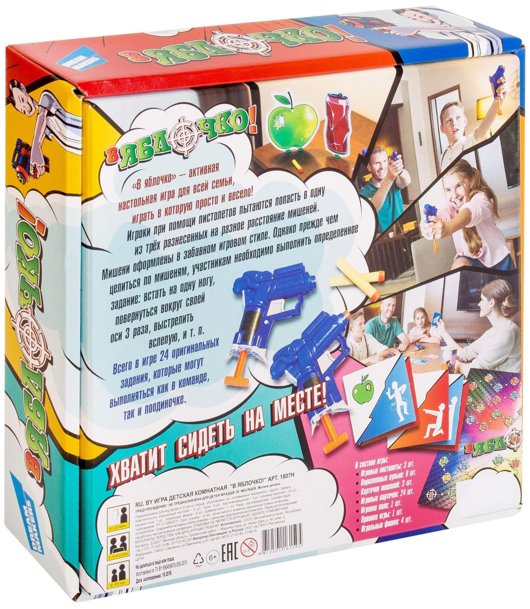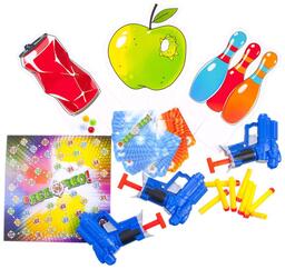• Комплектация игровые пистолеты 3 шт; поролоновые пульки 9 шт; карточки мишеней 3 шт; игровые карточки 24 шт; игровое поле; правила игры; игральные фишки 4 шт