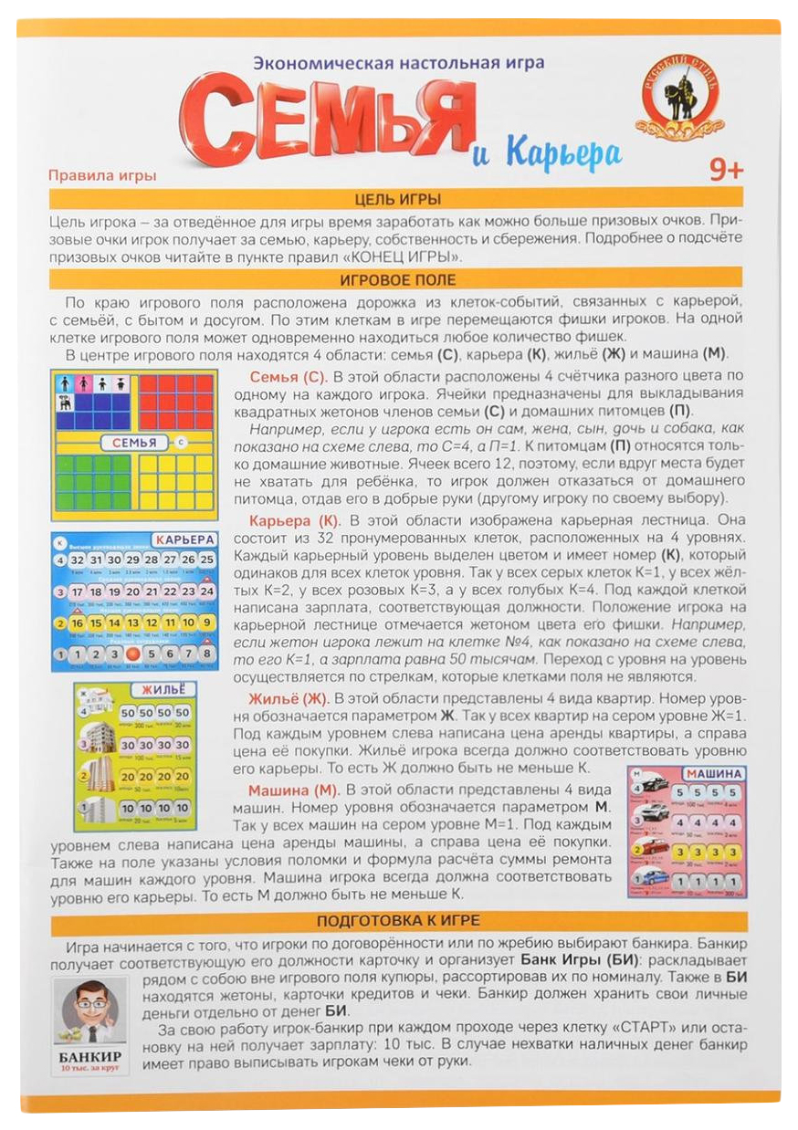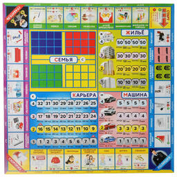 • Комплектация 2 кубика; 4 фишки; 40 карточек; Игровое поле