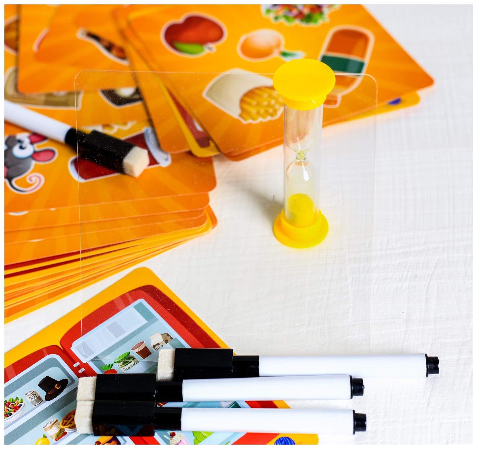 • Комплектация маркер 4 шт; прозрачный планшет; карточки 30 шт; песочные часы; правила игры