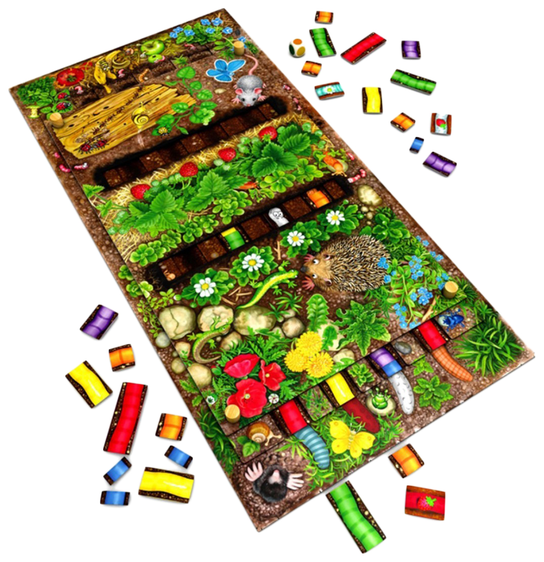 - Комплектация 4 головы червяков разных цветов; 4 соединяющих крепления; 4 части червяка с клубничиной; 4 части червяка с ромашкой; 60 частей червяка; Игровое поле с дорожками; Игровой кубик с цветными гранями; Поле с прорезями; Правила игры