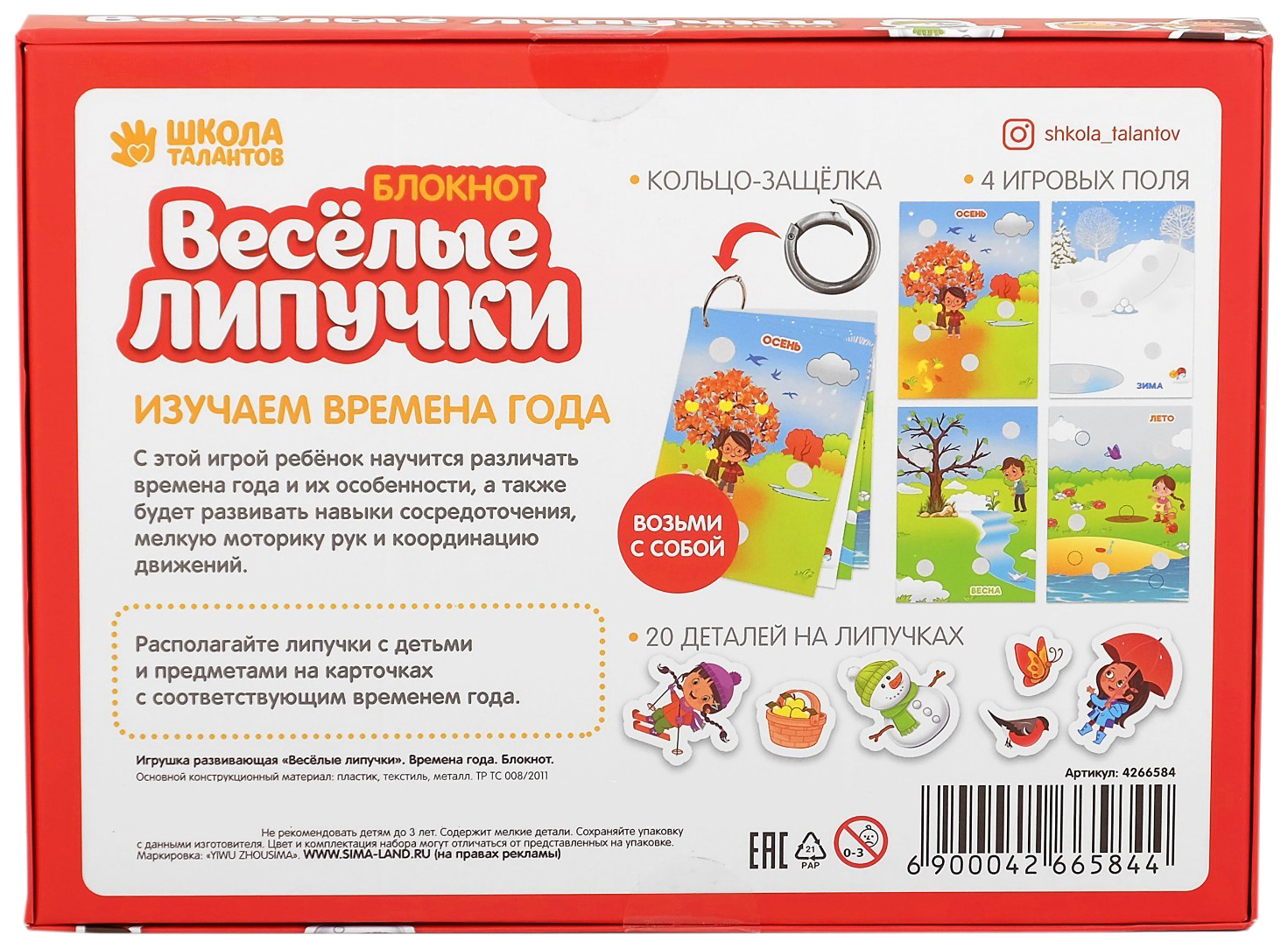 Игрушка развивающая "Веселые липучки. Блокнот. Времена года" Sima-Land