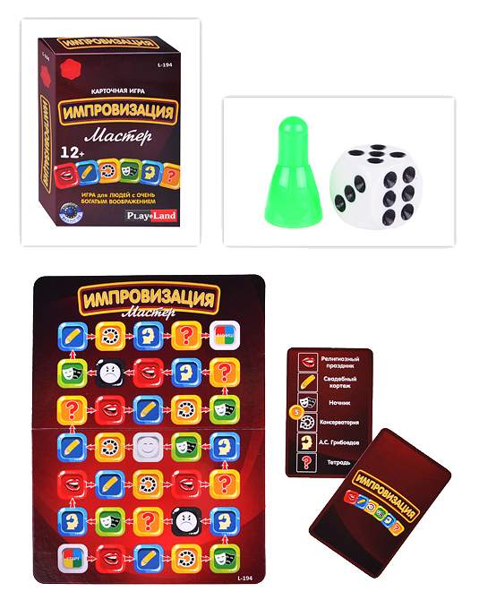 - Комплектация игровое поле; фишки; карты; игровая кость; 4 фигурки; правила игры