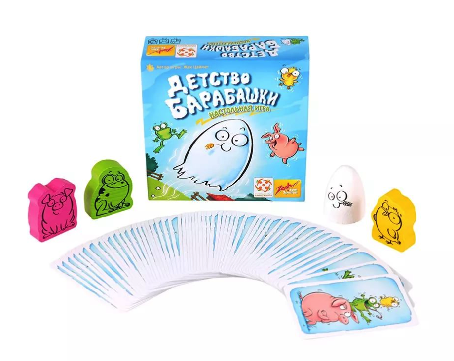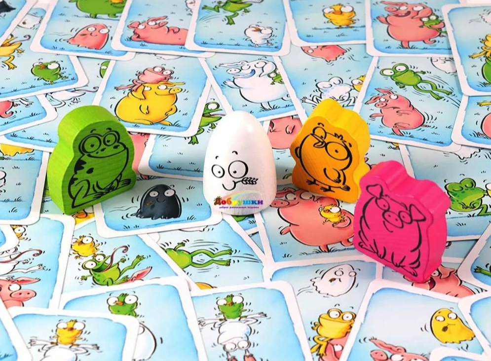 - Комплектация 4 деревянные фигурки, 55 карт, правила игры