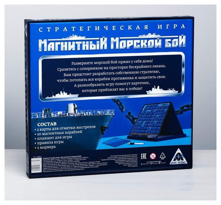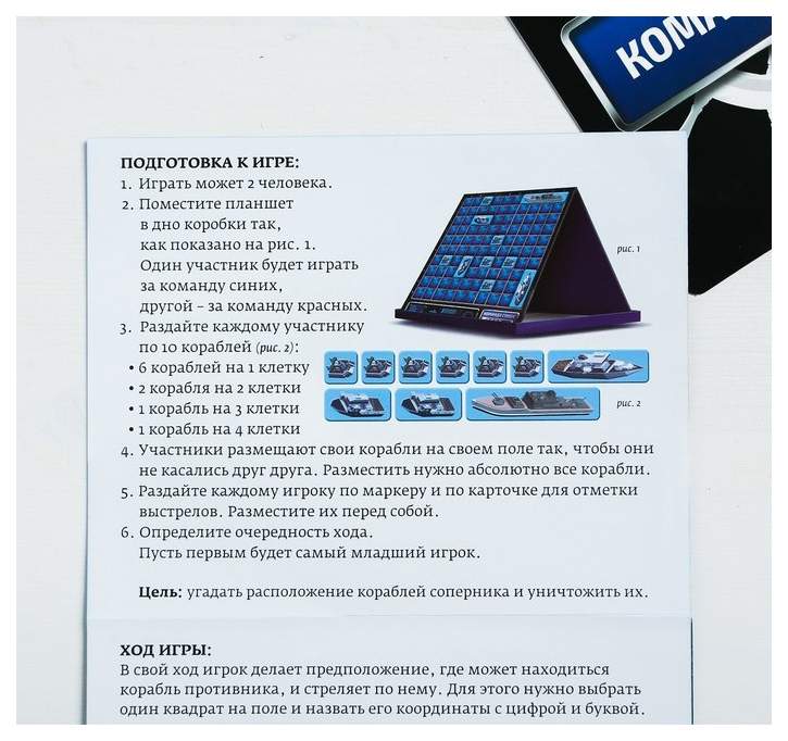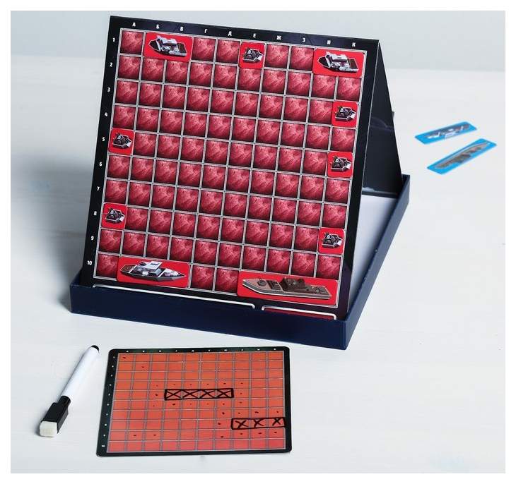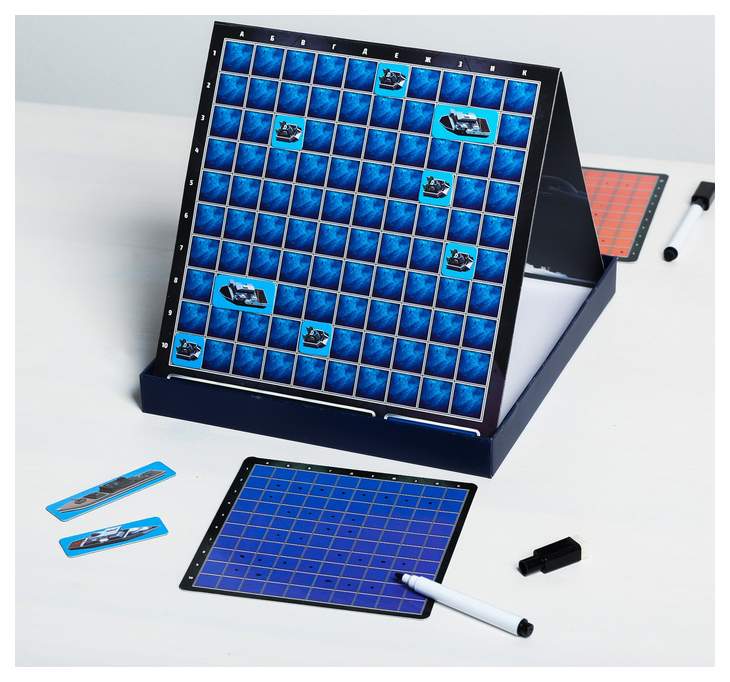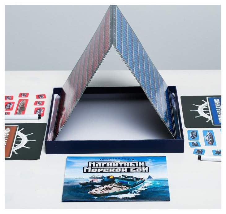 • Комплектация планшет для игры; 2 карточки для отметки выстрелов; 20 магнитных кораблей; 2 маркера; правила игры