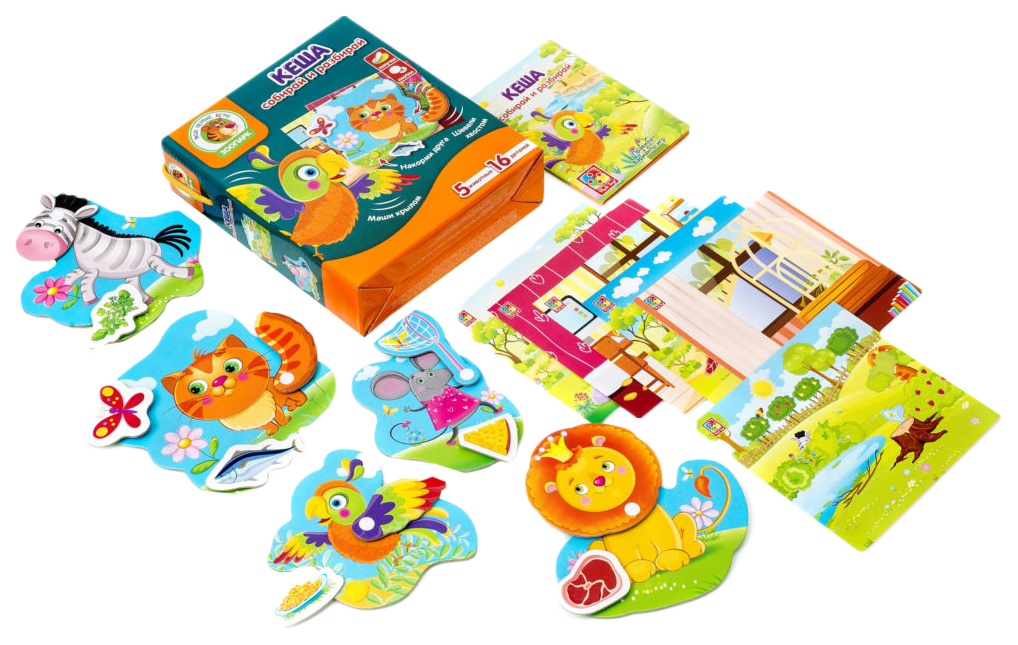 - Комплектация 12 липучек; 16 картонных деталей; 6 карточек; Правила