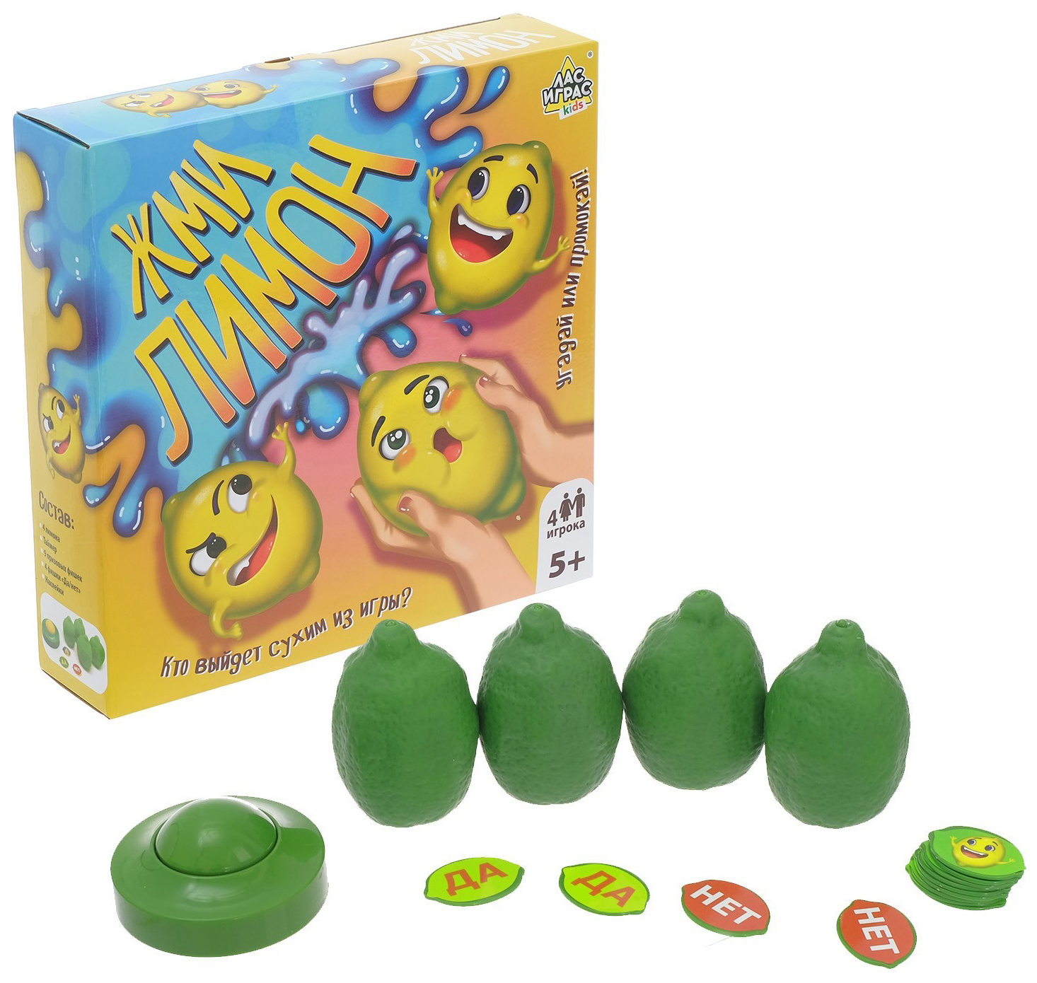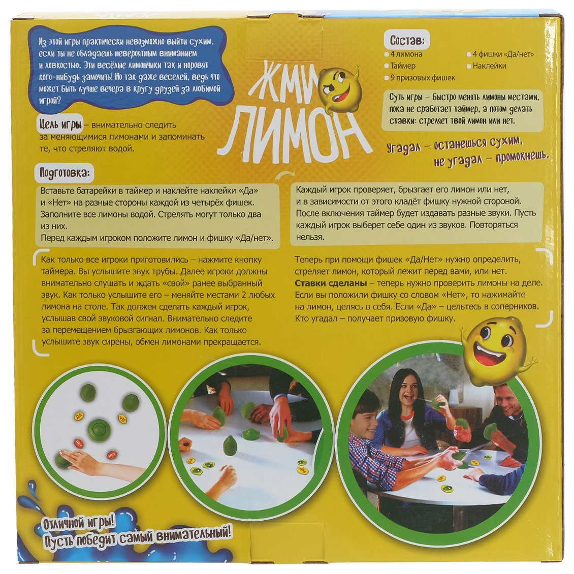 - Комплектация лимон 4 шт.; таймер; фишки призовые 9 шт.; фишки «Да»/»Нет» 3 шт