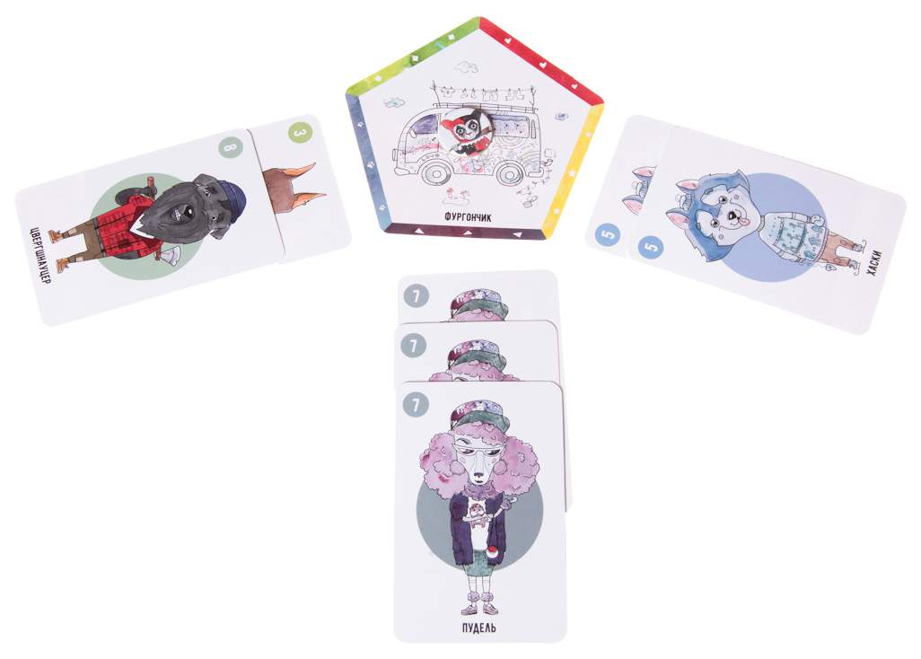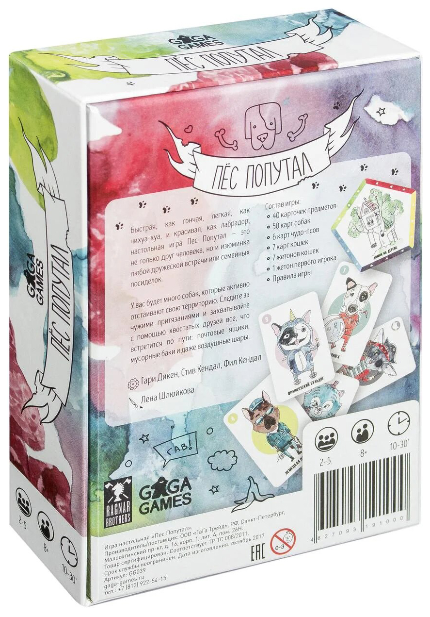 • Комплектация 50 карт собак; 40 карт предметов; 7 карт кошек; 6 карт супер-псов; 7 жетонов кошек; жетон первого игрока; правила игры