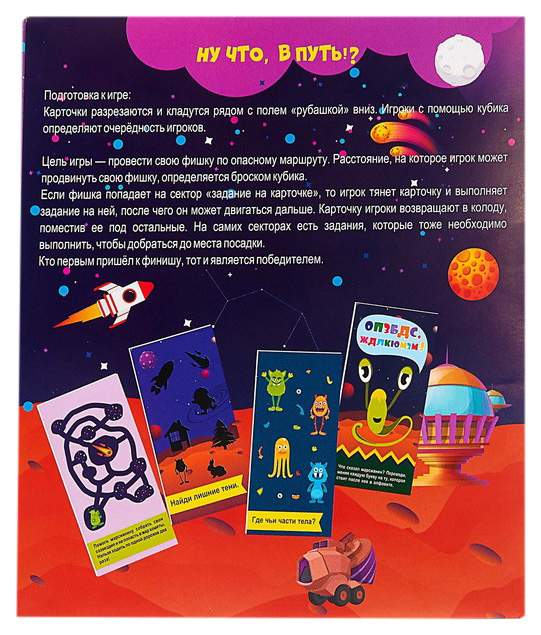 • Комплектация игровое поле - 1 шт; кубик - 1 шт; фишки - 4 шт; правила игры - 1 шт