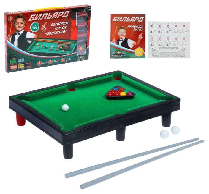 - Комплектация игровой стол - 1 шт; игровое поле - 5 шт; кий - 2 шт; треугольник - 1 шт; шар - 16 шт; ножки - 6 шт; инструкция - 1 шт; аксессуары