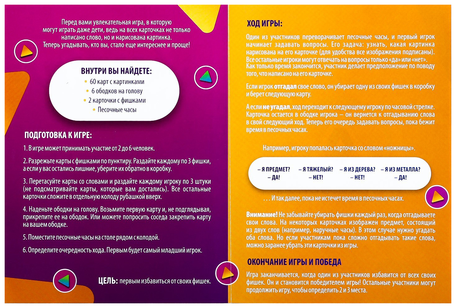 - Комплектация 60 карт с картинками; песочные часы; 6 ободков; 2 карты с фишками; правила игры