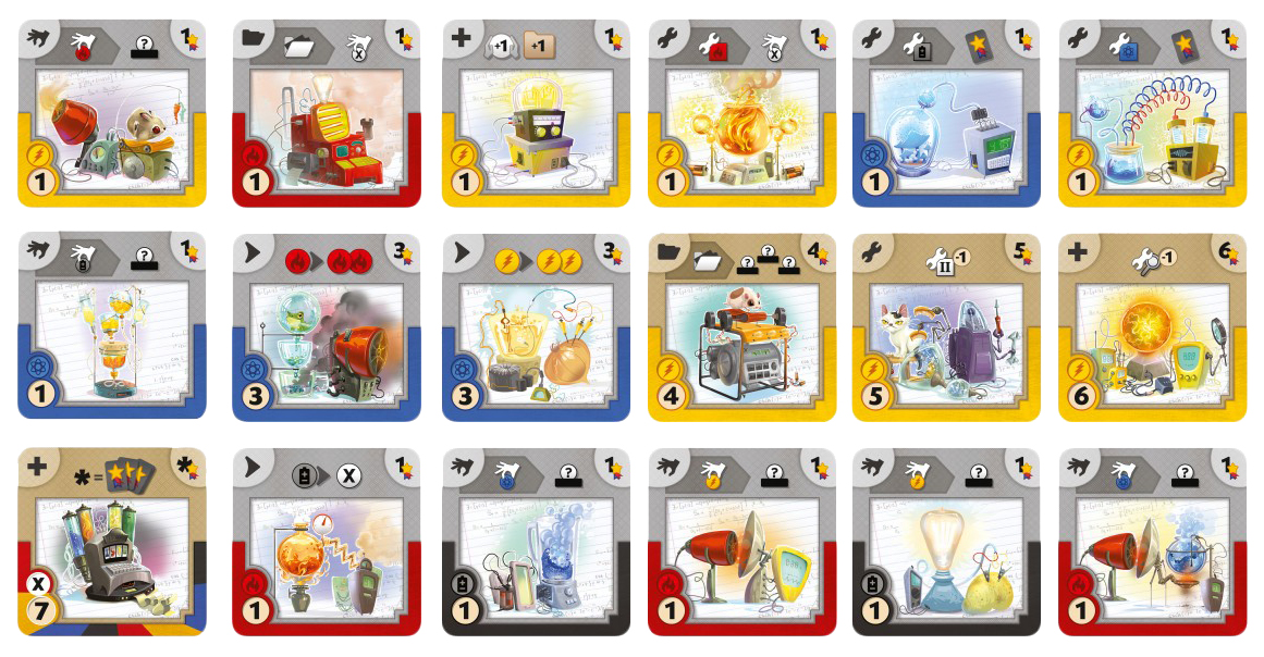 - Комплектация Жетон победных очков - 20 шт; Карты прибамбасов - 112 шт; Кольцо хранилищ энергии - 4 шт; Планшет игрока - 4 шт; Правила - 1 шт; Раздатчик энергии (сборный) - 1 шт; Руководство по сборке раздатчика - 1 шт; Список эффектов - 1 шт; Сфера энергии - 52 шт