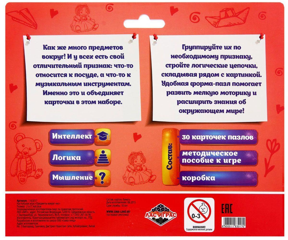 игра логические цепочки "Предметы вокруг нас" 21 х17,5 х0,8см