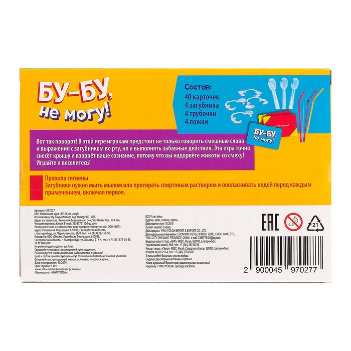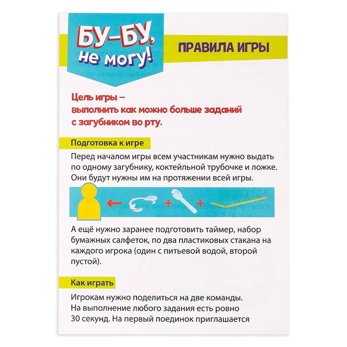 • Комплектация 40 карточек; 4 загубника; 4 трубочки; 4 ложки