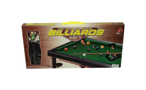 - Комплектация игровой стол - 1 шт; кий - 2 шт; треугольник - 1 шт; шар - 11 шт; ножки - 6 шт