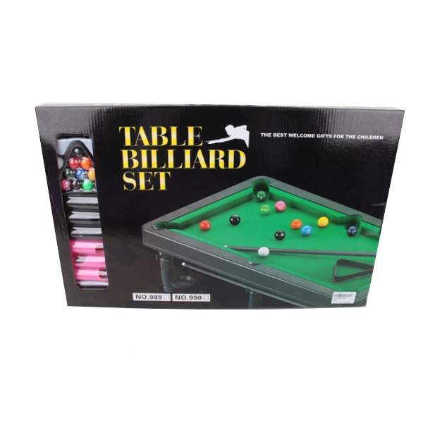 - Комплектация игровой стол - 1 шт; кий - 2 шт; треугольник - 1 шт; шар - 11 шт; ножки - 6 шт